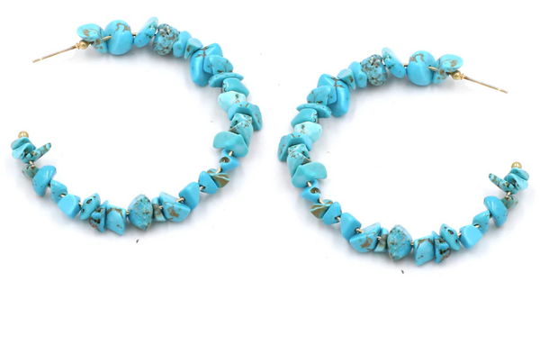 U SHAPED HOOP TURQUOISE STONE EARRINGS (SOLD BY THE PAIR)