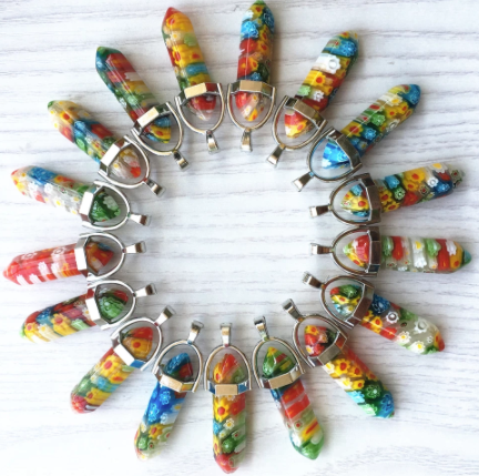 ASSORTED STYLE COLORED GLASS FLOWER PENDANTS